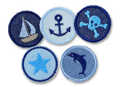 Stern Jeansflicken dunkelblau gestreift, 2 Größen